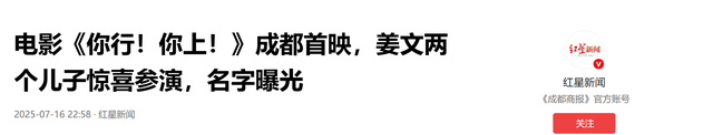 电影《你行!你上!》成都首映,姜文两个儿子惊喜参演,名字曝光——红星新闻[引用日期2025-07-16]